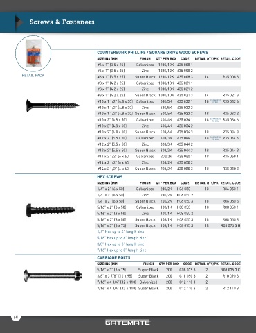 SIZE INS (MM) FINISH QTY PER BOX CODE RETAIL QTY/PK RETAIL CODE